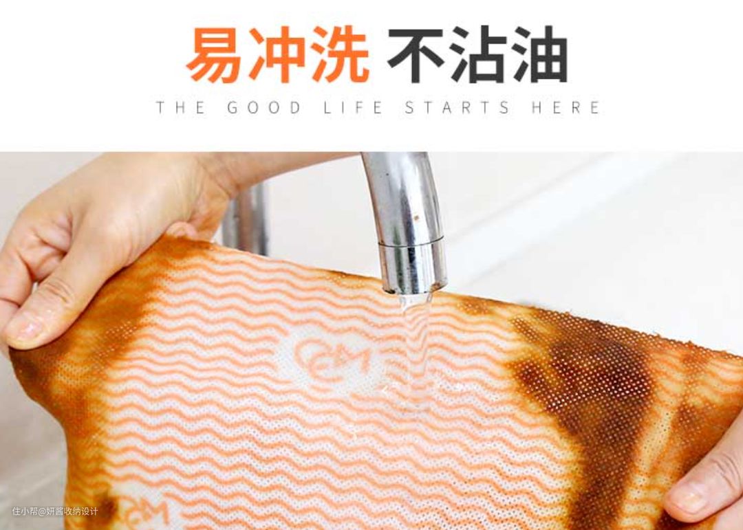 遇到要清洗锅碗瓢盆的时候,撕下一张抹布,沾一些水,然后擦拭锅碗。清洗过后可以直接丢弃,省掉了清洗抹布的时间。除了锅碗瓢盆,还可以顺手擦拭水池、水龙头、瓷砖等位置,再也不会有抹布细菌滋生的烦恼,尤其推荐潮湿地区的同学入手。