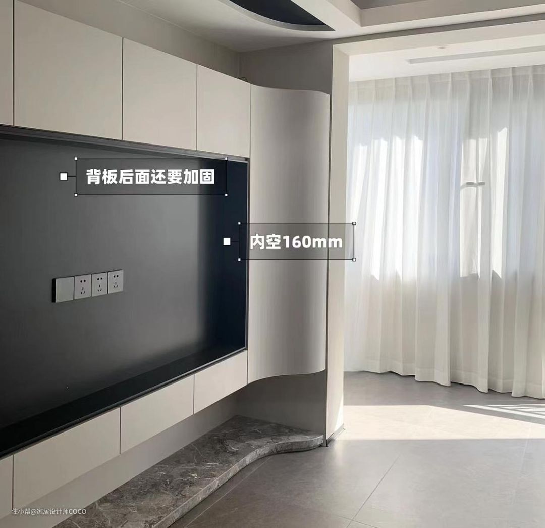 ①做嵌入式壁挂电视,内空不能低于15公分,内部预留2-3个插座。