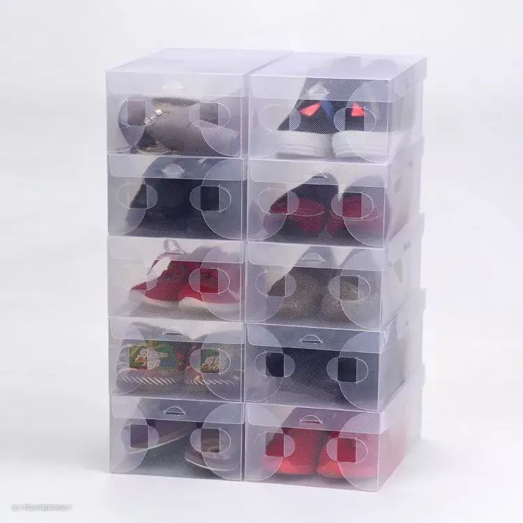 透明鞋盒。似乎既防尘又可视,但放进鞋柜/鞋架试试?鞋柜空间本来就稀少,加上一个大盒子,本来一排能放5双鞋子的架子,用了它最多放下3双。鞋子数量少于10双还可以,如果你是八爪鱼,就果断放弃这种产品吧。