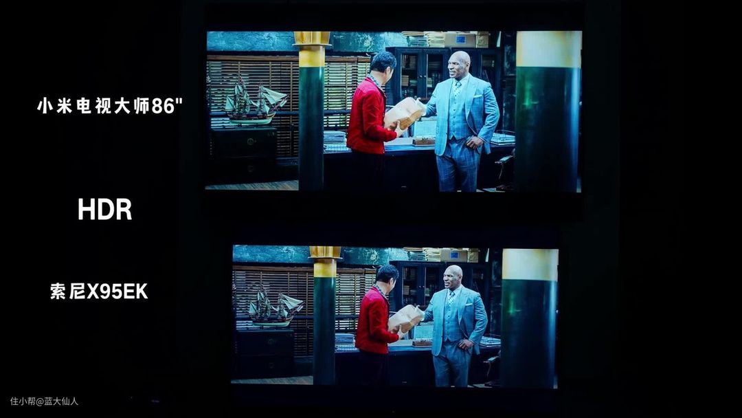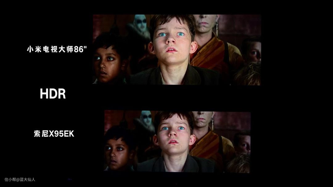 这次小米电视大师86英寸的硬件配置并没有非常顶级,当然价格也没有很贵,当我把它与索尼X95EK摆一起,放了几部电影,我立刻感受到小米大师的肤色和色彩很棒,真实自然,饱和度恰当,HDR亮度映射做的也很好,人物面部明暗有度,细节丰富,观感非常舒服,这个其实也是最难做的部分,国内鲜有厂家能把肤色做的真实自然的,其他方面比如立体感爆发力控黑等方面,属于常规能力,做得好是应该的,所以没什么好夸的。