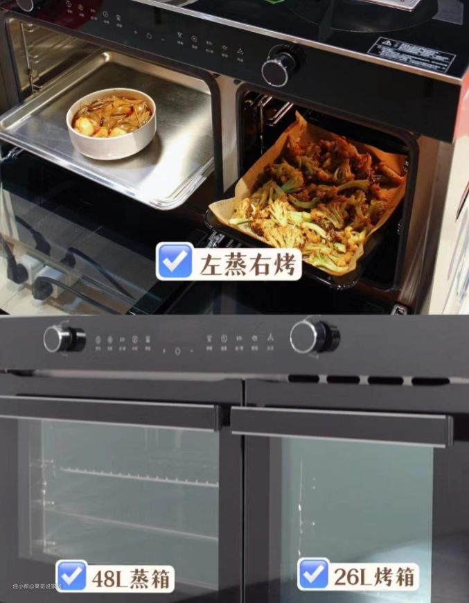 喜欢蒸烤的朋友真的是双厨狂喜,亿田这款蒸烤独立集成灶,真的实现了我们对蒸烤的所有幻想。48L蒸箱26L烤箱的搭配空间,能满足日常对蒸烤箱的要求,而且蒸烤独立的还能减少很多厨房空间,不用把蒸烤箱搬来搬去,省时省力。