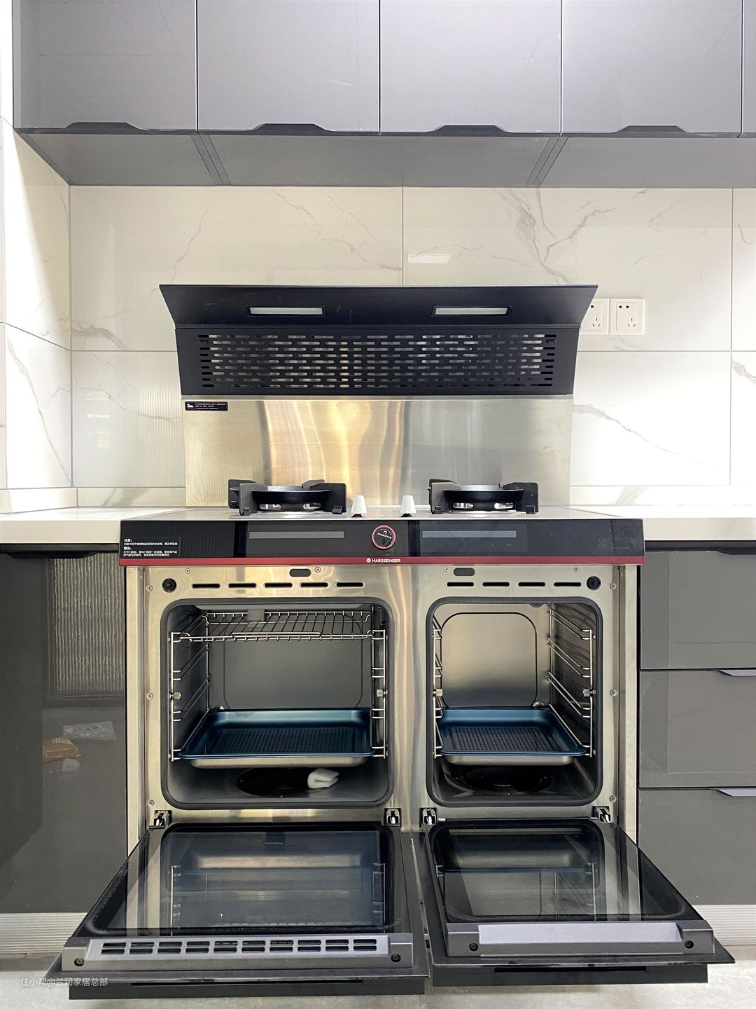 ②节省空间。灶下集成了烤箱或洗碗机消毒柜等,满足实用性的同时,更大程度地节省厨房的空间;