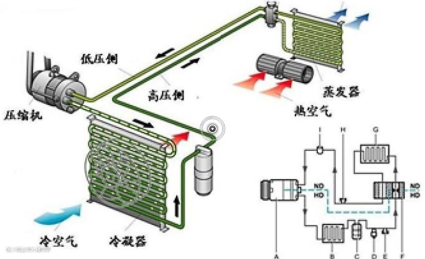 冷凝器的作用是把从压缩机中排出的高温高压制冷剂蒸气,通过一根长长的管子,让热量发散到四周的空气中,通过风扇带走。为了提高冷凝器的效率,冷凝器的管子一般会采用铜或铝之类的导热性较好的金属制作,铜管效果要优于铝管。通常冷凝器铜管越长,散热面积越大,制冷效果越好,运行时也更安静。