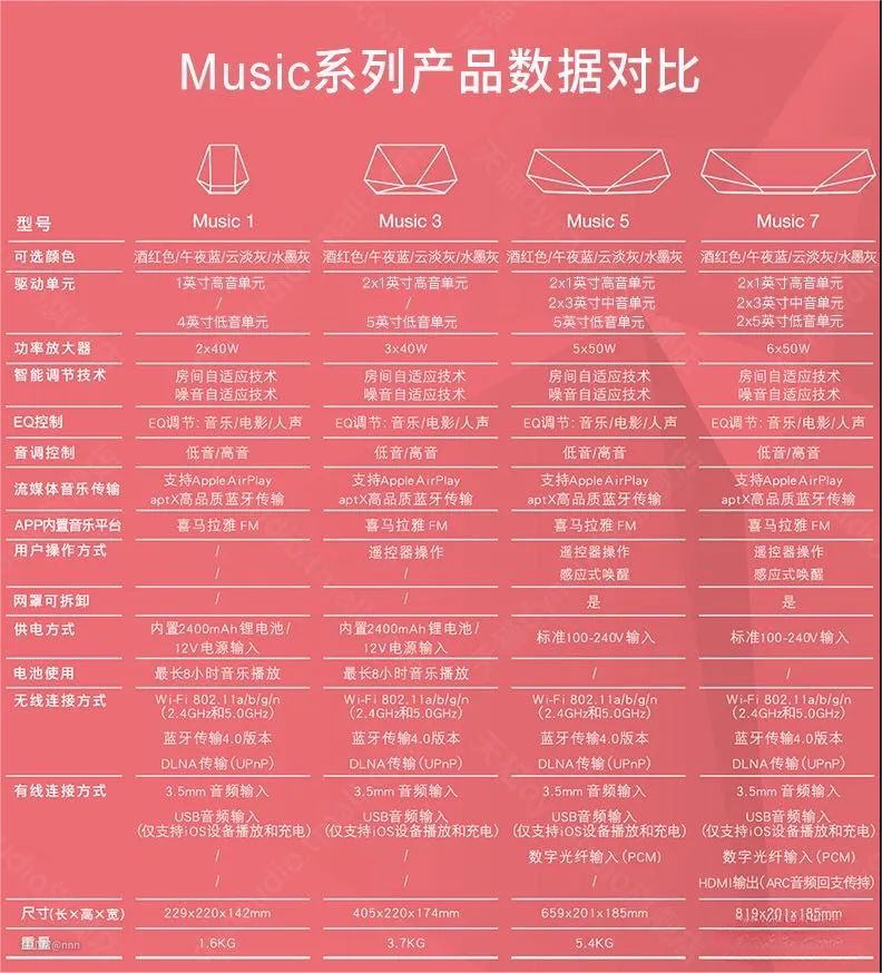 有些小伙伴可能对丹拿Music系列较为疑惑,这里放上这个从产品的数据对比,结合自己使用的场景去选购。