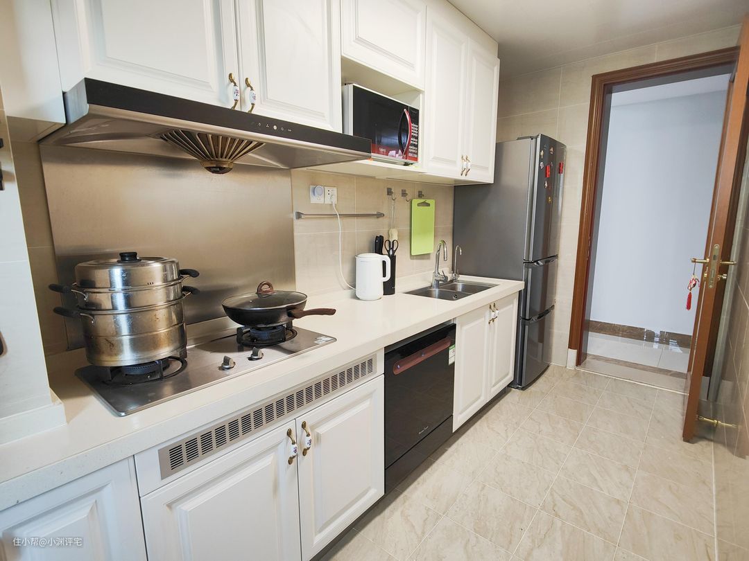 像我家,是把冰箱放在了橱柜旁边。冷藏室开门,刚刚遇到没有橱柜的台面部分。冷冻室如果有门的话,会被橱柜遮挡。但现在只需要向外拉抽屉就行了,非常适合空间不太富裕又想用大容量冰箱的用户。
