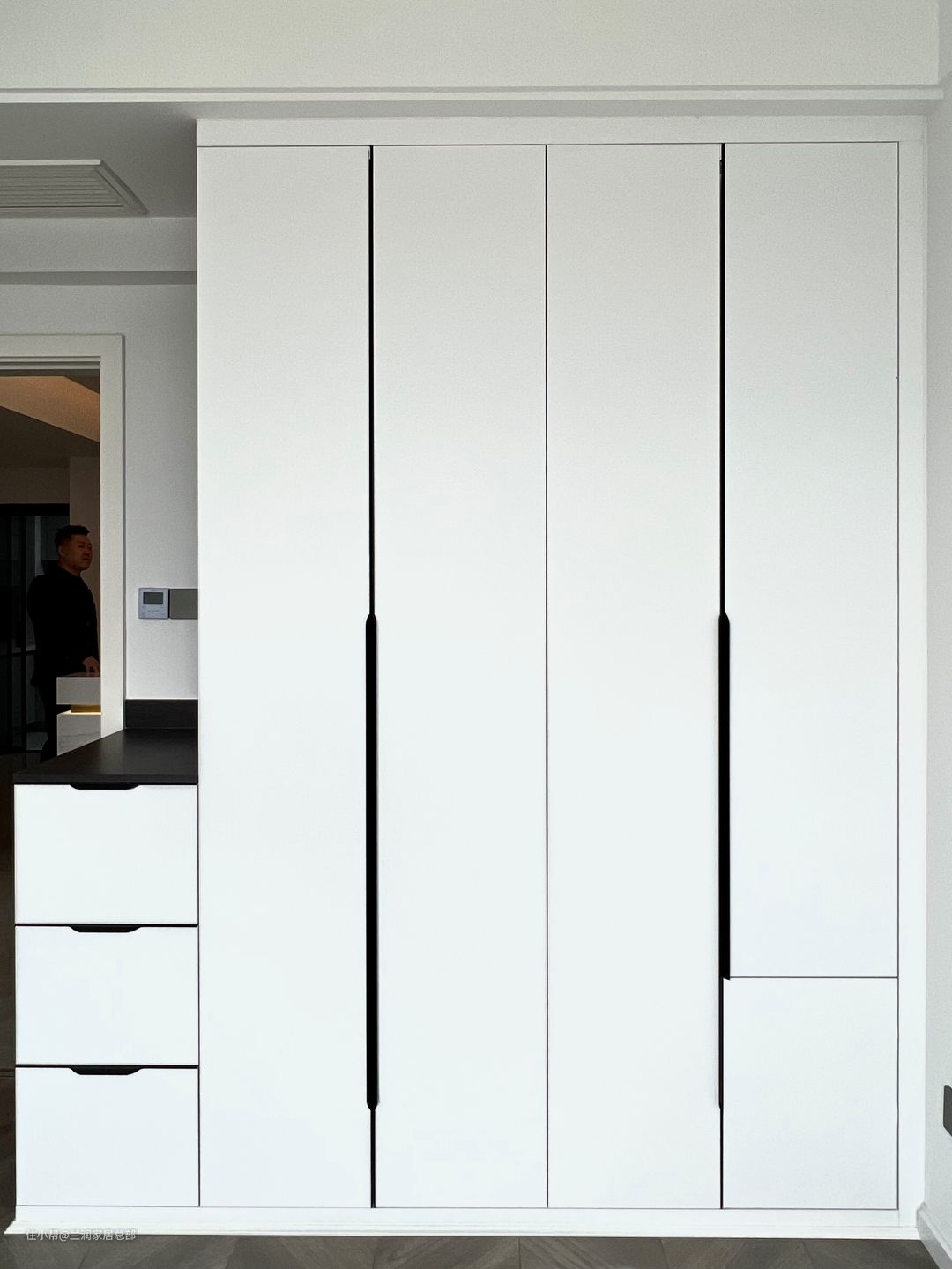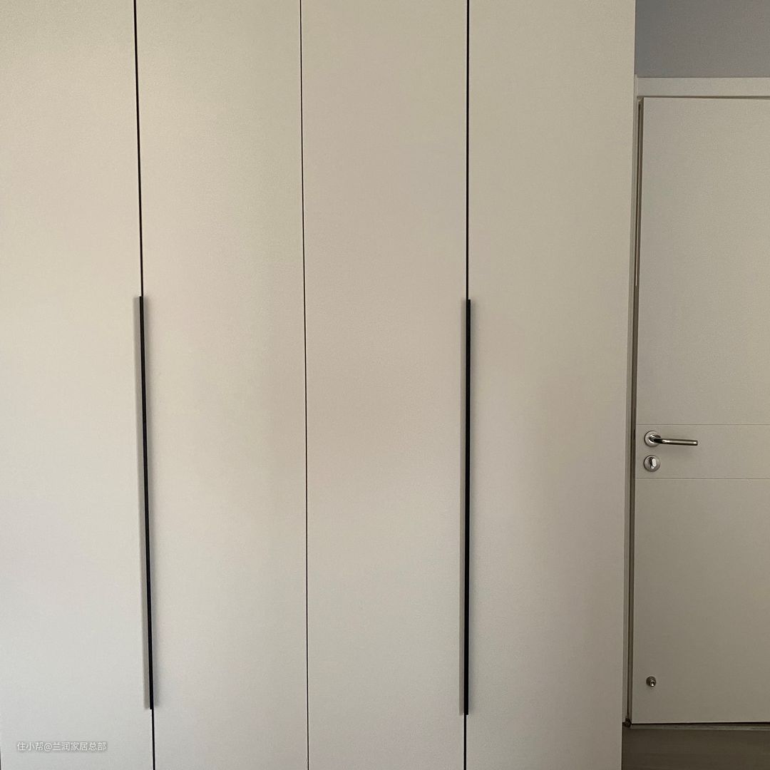 极简衣柜建议都安装一体长拉手,不太建议短拉手哦,然后就是拉手离地面的高度要把握好,长拉手建议离地100-200mm为宜!