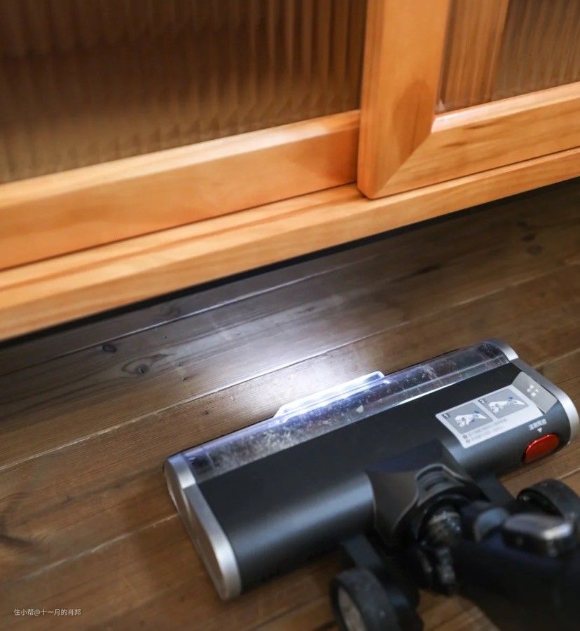 以往的吸尘器都没有这个灯光照明,随便来回滚几下就以为干净了。但是像地面上的一些宠物白色的毛发和微小颗粒很容易看不见,但是有了P7就不怕了,有了照明灯光就能一清二楚,吸尘更精确了,特别是照着家具底,就感觉发现了新大陆似的。
