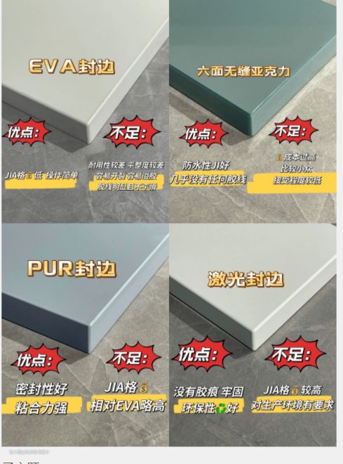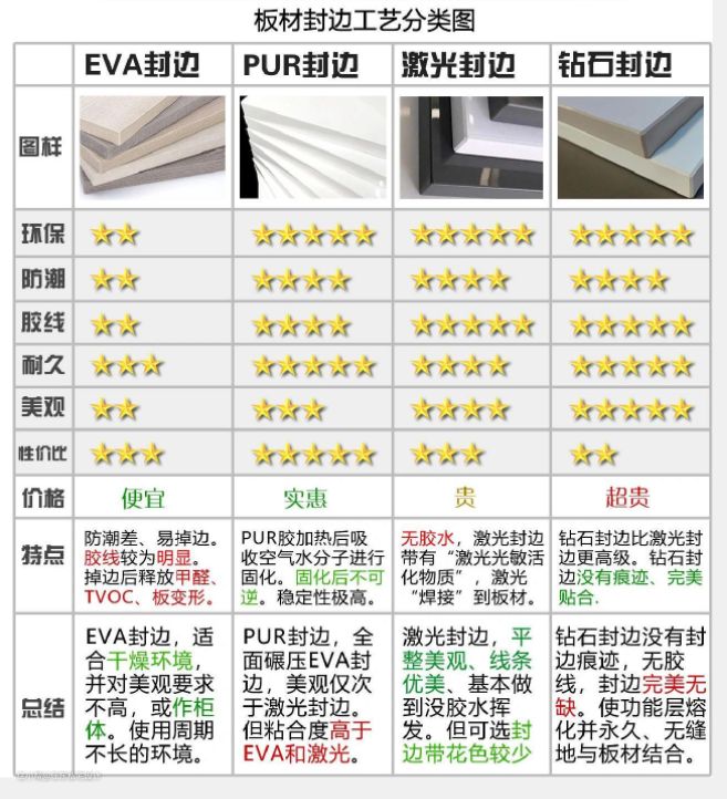 常见封边就是PuR和EVA,激光都是高定品牌在使用。