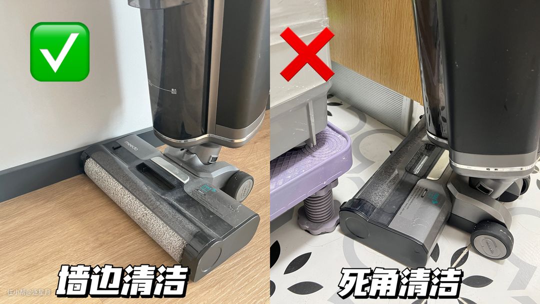 加上双侧沿边零距离,可以清洁边边角角。拖完就干,几乎没有水渍,解决水痕问题。