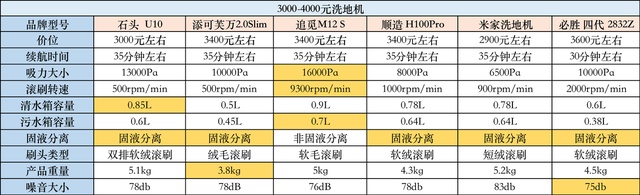如果我们仔细去对比会发现扫地机器人吸力是以Pa为单位、吸尘器吸力是以AW,而部分洗地机机型只有滚刷转速表示并没有吸力大小标注。因为很多不公布吸力的洗地机,实际上吸力大概在5000pa及以下,在价格上也比较低。