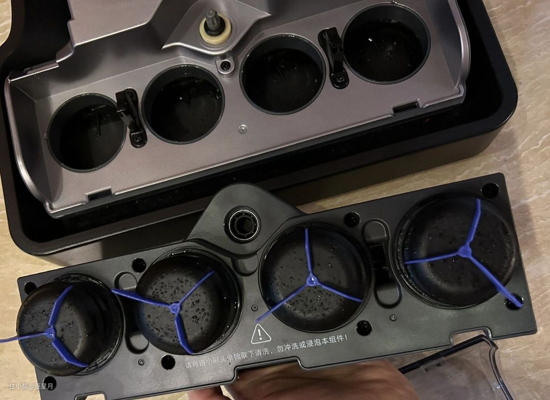 4、洗地机水痕:如果你感觉拖地一次比一次水痕严重,首先可以看看出水口、吸水风机是不是有问题,其次检查一下滚刷头的损耗情况,建议滚刷头可以多配备一副,来回交替使用。