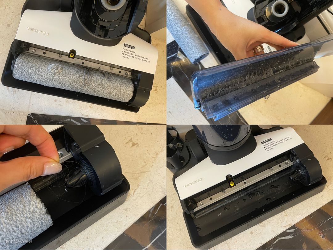 但这个问题不大,不会影响机器运行,洗地机在自清洁的时候能清除一部分。等滚筒积累到一定毛发的时候,自己手动清除也是很方便的。