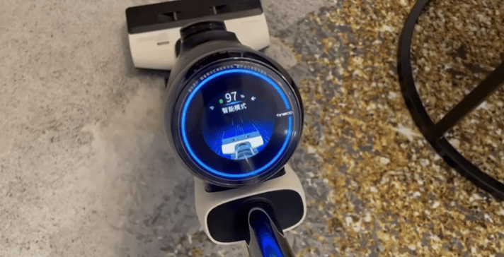 现在价位在一千元左右,是扫、拖、吸、洗一体。它有配置一个LED显示屏,可以显示电量吸力以及清洁提示等信息。