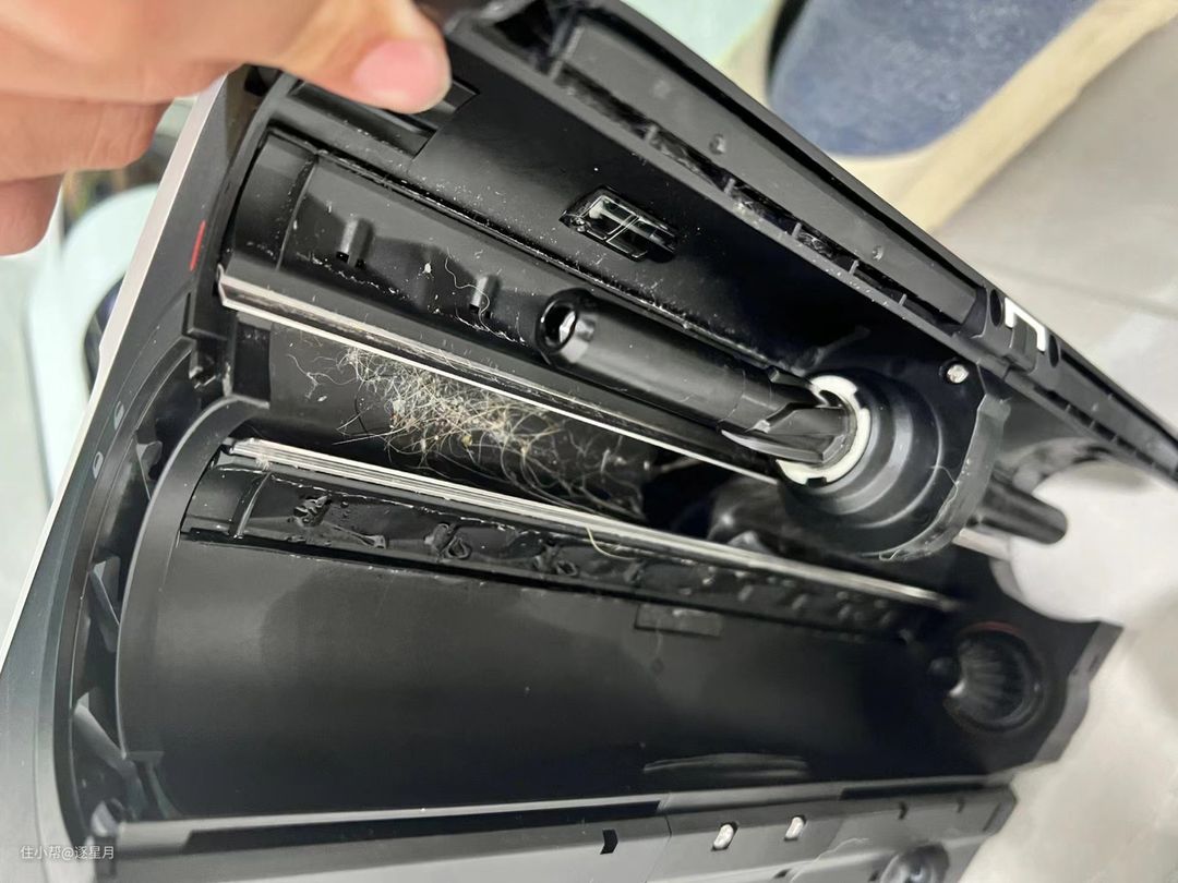 这样的设计和配置在同价中找不到第二款了。大水箱搭配大电池的双续航比较适合适大户型家庭,不适合对除菌有特殊要求的家庭。 不足之处在于双滚刷之间的夹缝处很容易藏污纳垢和毛絮堆积,还有刷头和机身之间的万向轴设计,机身无法自己站立,需要用自带的支架。