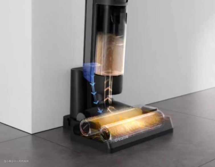 双滚刷加上双风道搭配两万的超级吸力.地面上的干湿垃圾基本全部搞定,很“省心”,地刷贴边设计只有8毫米,平时很难清洁的墙边也清洁到,家里的死角拐角都可以全部拿下。