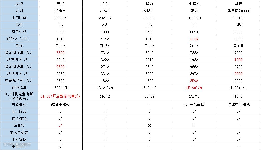 没有对比就没有伤害, 最后我给大家整理了上面几款空调的相关数据,从价格、额定制冷量、额定制热量和耗电量等方面,美的酷省电空调N8KS1-1的优势都非常明显,是入门级柜机空调中的“省电神机”,尤其是住在炎热和严寒气度,家住顶楼、存在西晒、层高大于2.8米、存在大面积玻璃,室内面积在30-50㎡,每年都能省下一笔非常可观的电费。