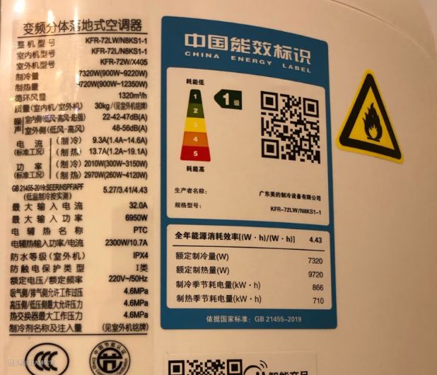 这台3匹柜机的APF值高达4.43,额定制冷量为7320W,对比国标4.2的标准要高出0.23,属于超1级能效空调。