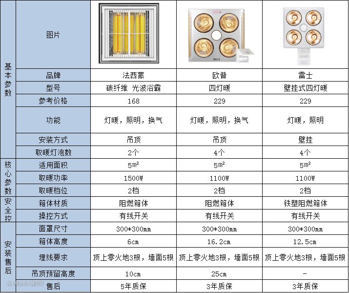 6、灯暖/碳纤维/壁挂式浴霸推荐