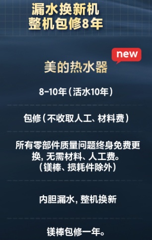 更关键的是美的UM敢承诺8年保修,除了镁棒保修一年外,其他任何零件都是8年内免费更换,如果内胆漏水还可以免费换新机。