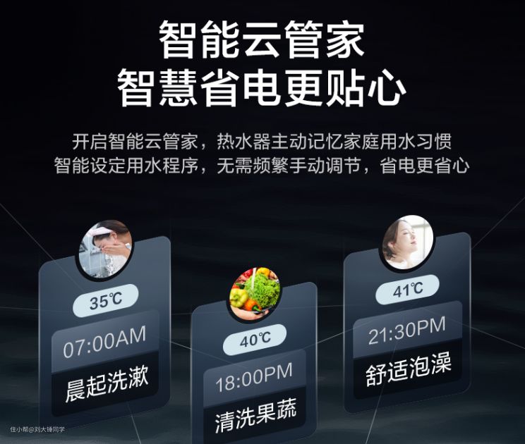 在APP中开启智能云管家功能后,UM会自动记录我们每天的用水习惯,并且根据这些习惯分析出在哪个时间点需要用多少热水、水温多少更合适,这样做到烧水有计划、不浪费。