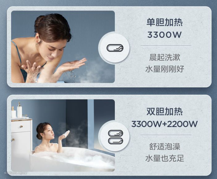 由于扁桶热水器在结构上的改变,从圆桶热水器的单内胆升级成了双内胆,这两个内胆可以根据我们的用水需求灵活调节,比如用水量少时,可以设置单胆加热,节能环保,用水量大时,可以开启双胆同时加热,保障热水充分供应,拒绝洗澡时忽冷忽热等不好的体验。
