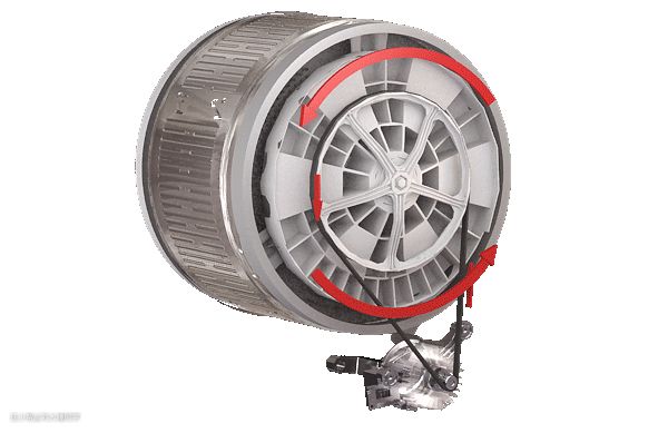 传统的BLDC电机是电机与内筒之间采用皮带连接,传动比为12:1。BLDC电机机型的内筒智能一圈一圈地转动,对衣物磨损程度较大。而且时间长了,皮带容易老化,轻则发出“吱吱”声,严重的皮带会断裂,机器无法正常运转。