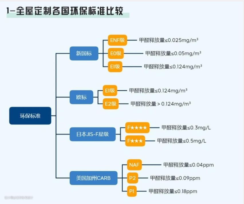国内大致分为E2、E1、E0级,甲醛 含量依次从高到 低,还有一个N AF代 表“无醛 添加”,是 行业内 较高的等级。现在市面上的板材,环保 等级 大 多是E1和E0级别,E1 是国 标强制 的标准,厂 家只有 达到E1,才是合乎环保标准的,E0在E1之上,而NAF级属于超E0级 ,