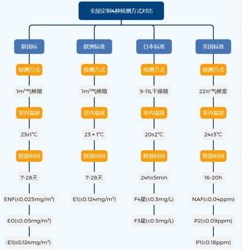 E0级,甲醛释放量小于等于0.05mg/m³E1级,甲醛释放量小于等于0.124mg/m³