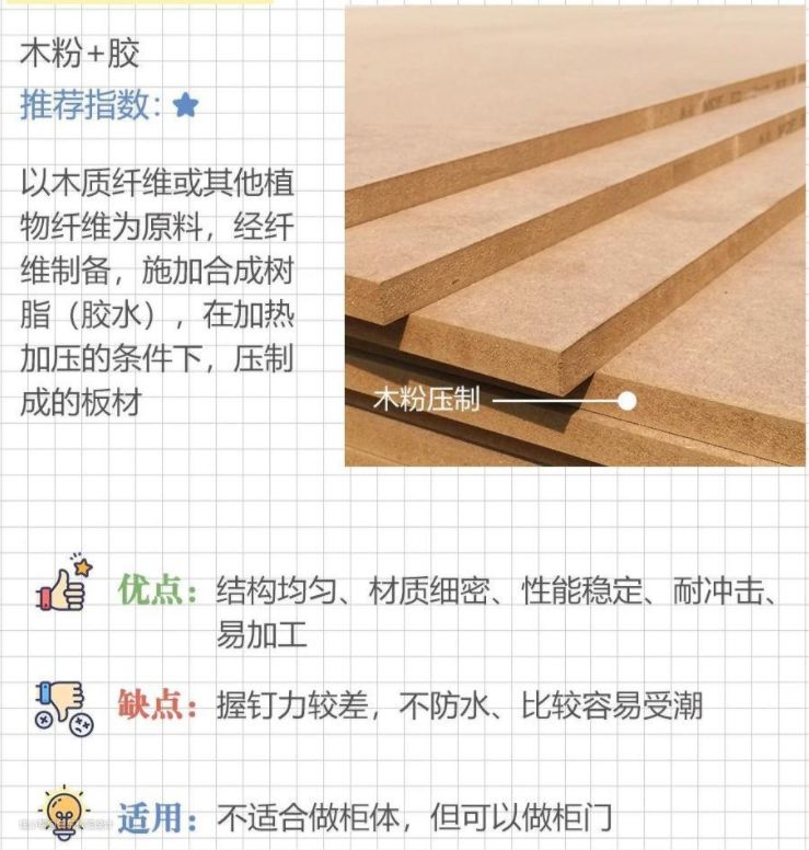2)密度板/密度板:(木粉+胶)把木头和植物纤维,加工成粉末,