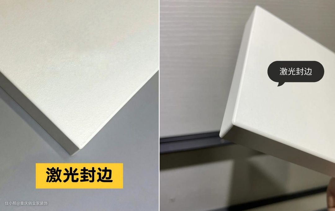 激光封边是近几年全新的封边工艺,也是目前效果最好的封边工艺之一。因为激光的方式封边过程中,根本不需要用到胶水,是在激光瞬间高温过后涂层活化,达到类似“焊接”的状态,快速实现无缝连接,从表面几乎看不到封边,相当于板材之间的缝隙“融为”一体,所以后期长期使用也不会溢胶和开裂现象发生。但由于激光封边的普及度不高,而且生产加工成本比前两者高出许多,该工艺大多数用于进口高端板材上使用,走高端路线,所以一般超高端柜子上用到该种工艺较多。