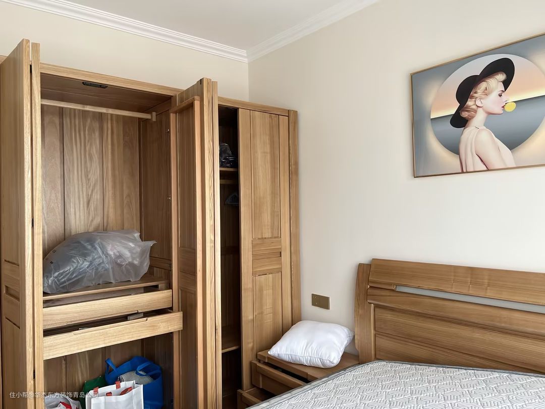 卧室设计重点:延续客餐厅的基调,以原木色家具为基础。
