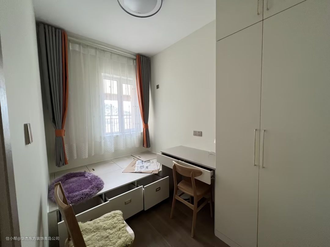 飘窗台面也是木板材质的,平时看书、喝茶是一个不错的放松场所,而且台面下还是抽屉,增加收纳空间