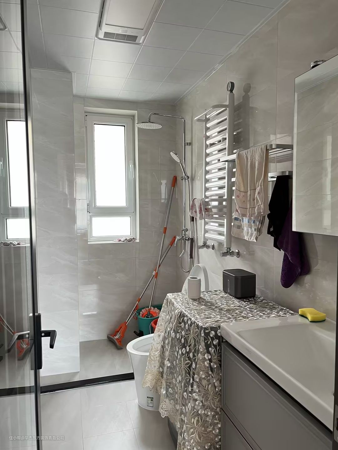 卫生间设计重点:延续厨房的配色原理,实现干湿分离。