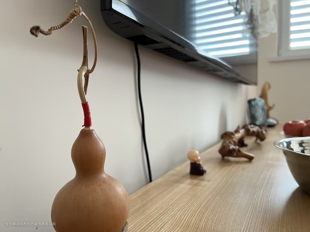 电视墙的原木色矮柜,收纳各种各样的书籍及装饰品,为生活带来了乐趣。