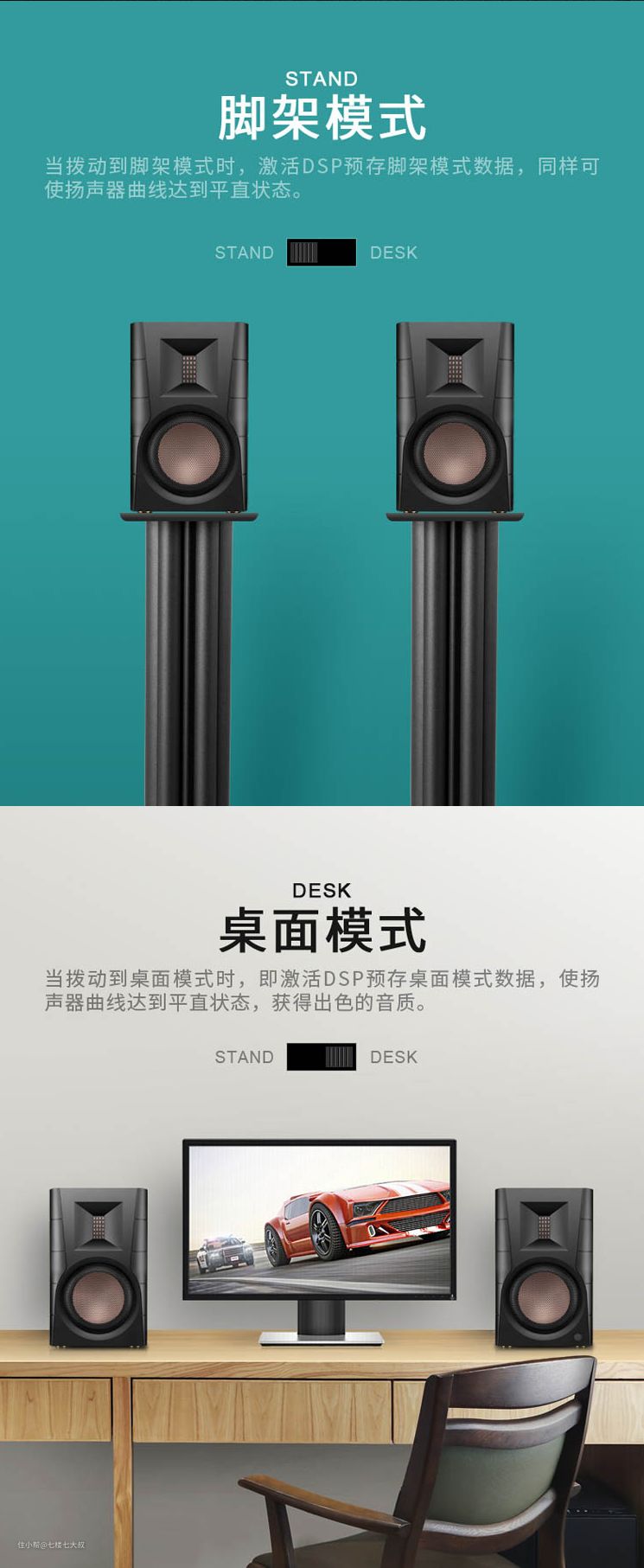 漫步者S3000MKII双主箱设计,音箱之间采用无线连接,摆位更自由美观,预设4种模式,可玩性高。