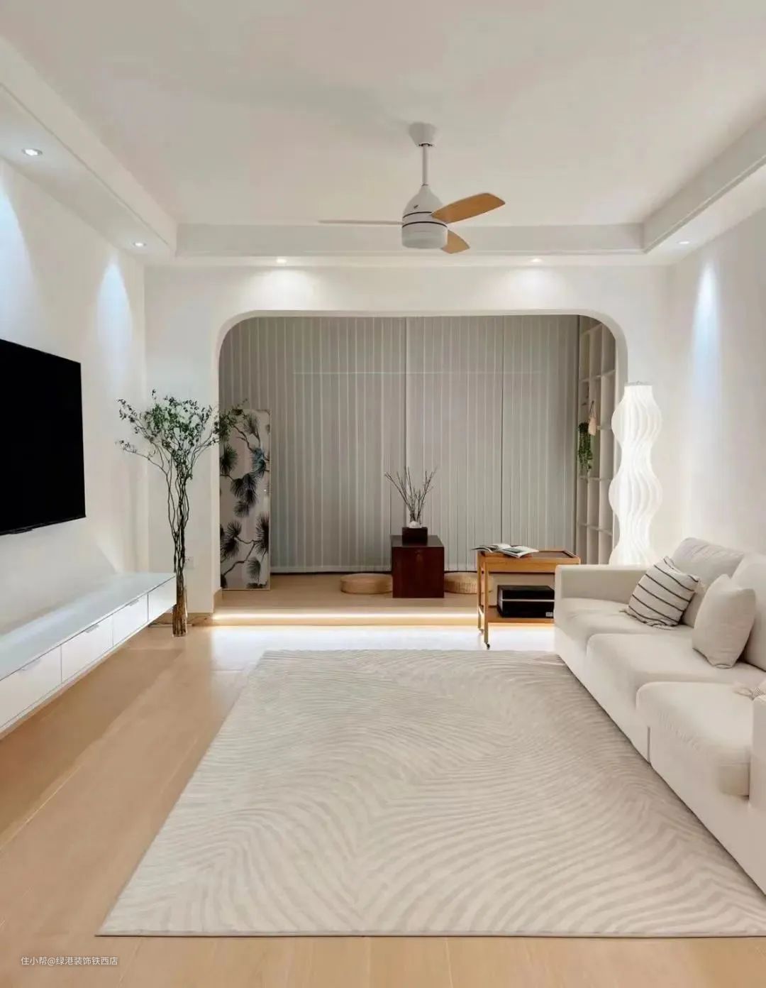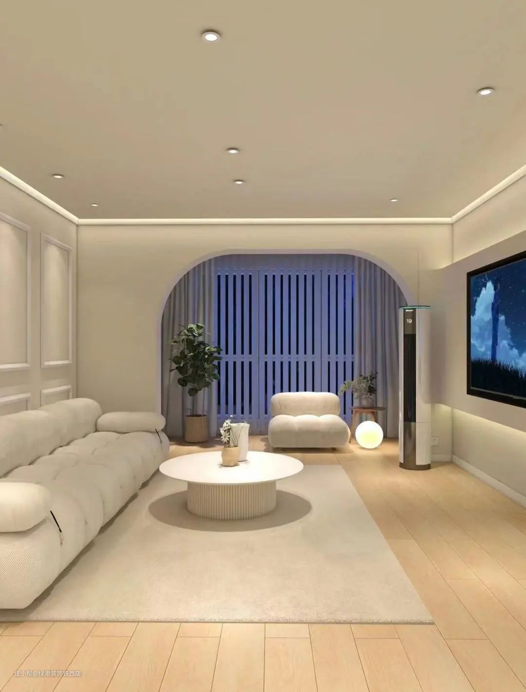 不同于常见的平吊和直线吊,弧形吊顶可以通过不同的弧形设计,圆弧、半弧、波浪形、圆角等形式打破顶部的生硬刻板,吸睛又好看。用弧形吊顶凸显一个家的美,不经意间流露出的温柔感,线条柔和流畅弱化棱角,奠定温和、舒适的整屋基调,将空间打造出浑然一体的效果。