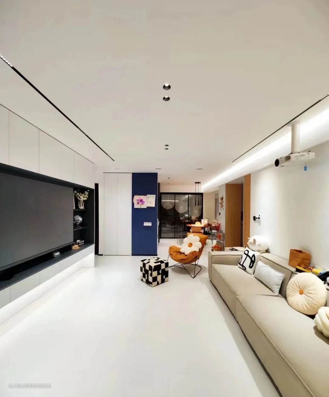 悬浮吊顶以简洁、空旷为主,大平层的悬浮吊顶,从每一个角度来看,处处是细节,给人呈现出更大的视觉效果,让层高更高、更整洁,再配上磁吸轨道灯,更有一种线条的延伸感。