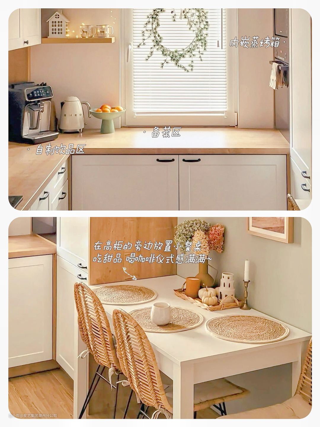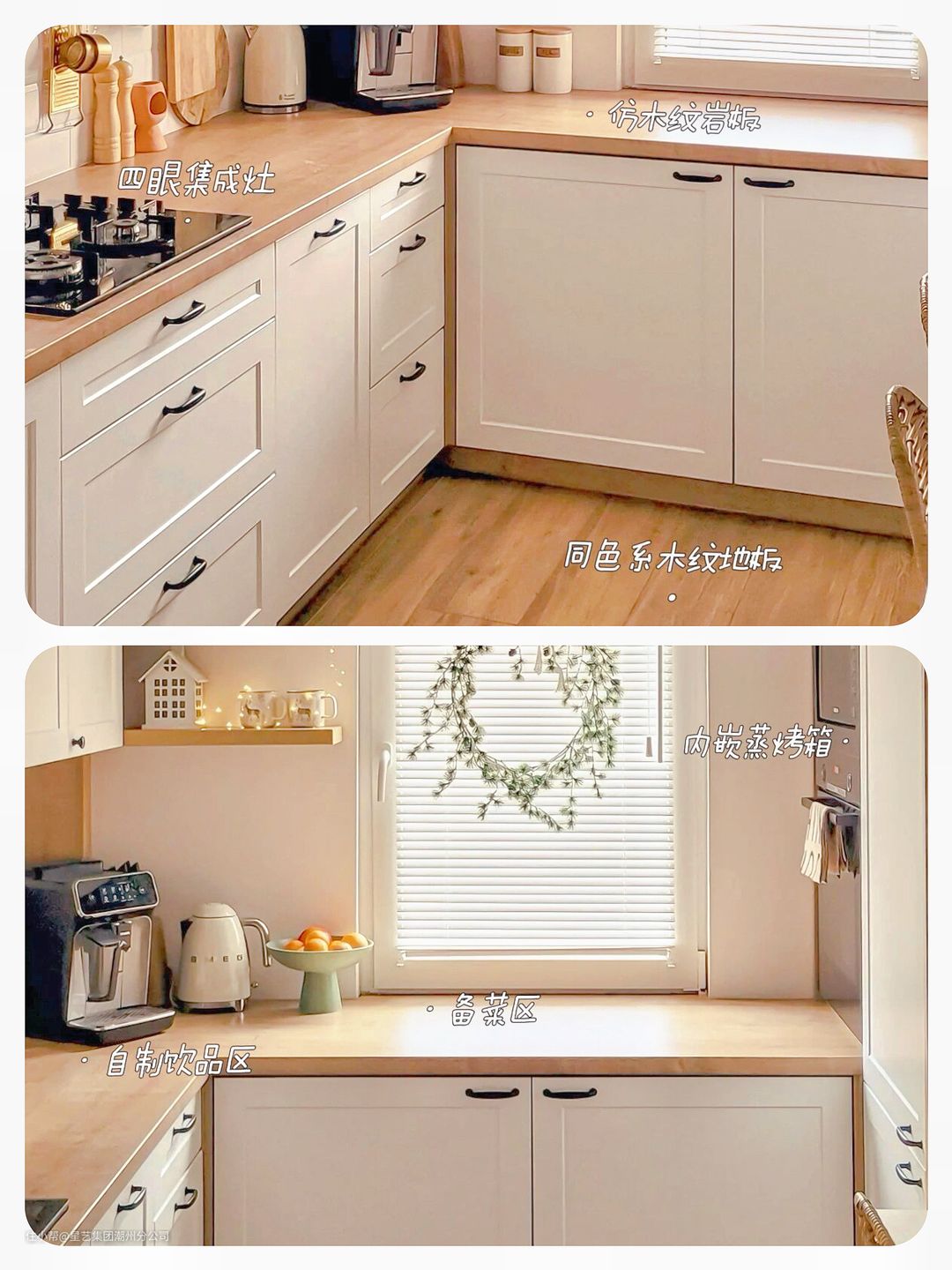 ►小空间设计的U型橱柜,米白色➕复古木纹色的搭配,被浪漫的法式治愈氛围包围热爱生活从下厨开始内附厨房的平面布局和橱柜的尺寸图💫