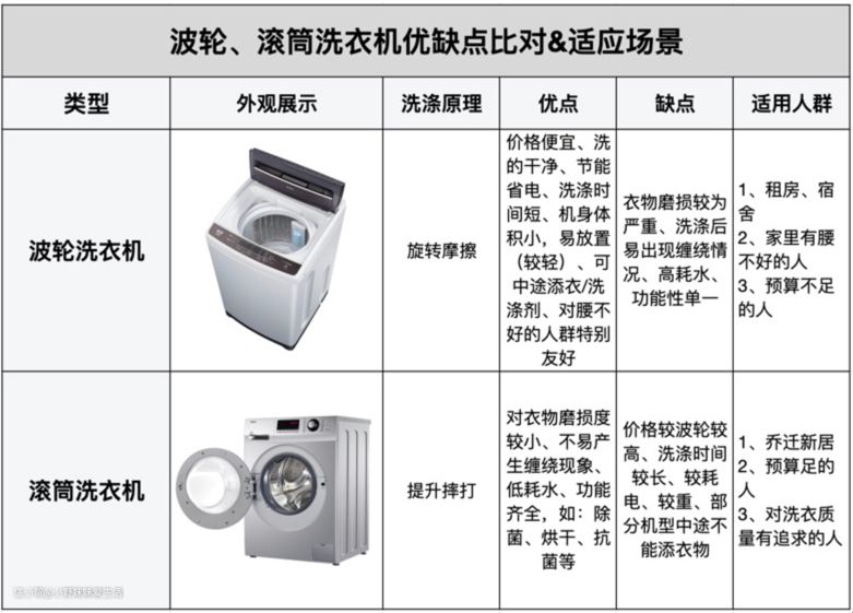 这种洗涤方式极易产生衣物缠绕的现象,对衣物磨损也较大,好在价格便宜,适合预算不足、租房、宿舍等人群(由于波轮洗衣机是顶部放取衣物,所以也适合腰不好的人群使用)。