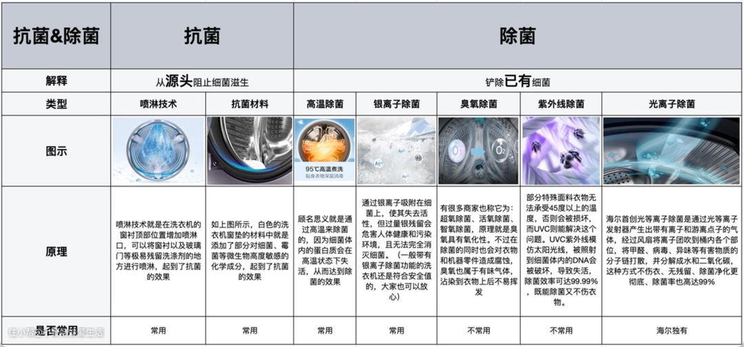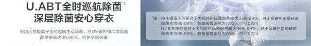 - 除菌方面:冷水光动银离子除菌、双极除螨、除螨洗、高温除菌;