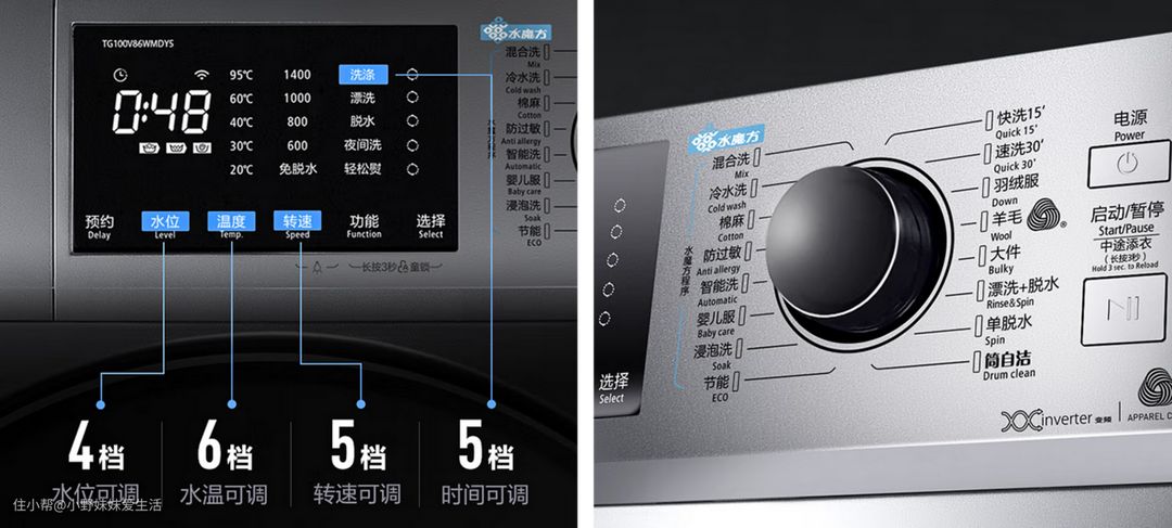 - 支持羊毛洗、羽绒洗,再加上水韵内筒设计,护衣方面有保证;