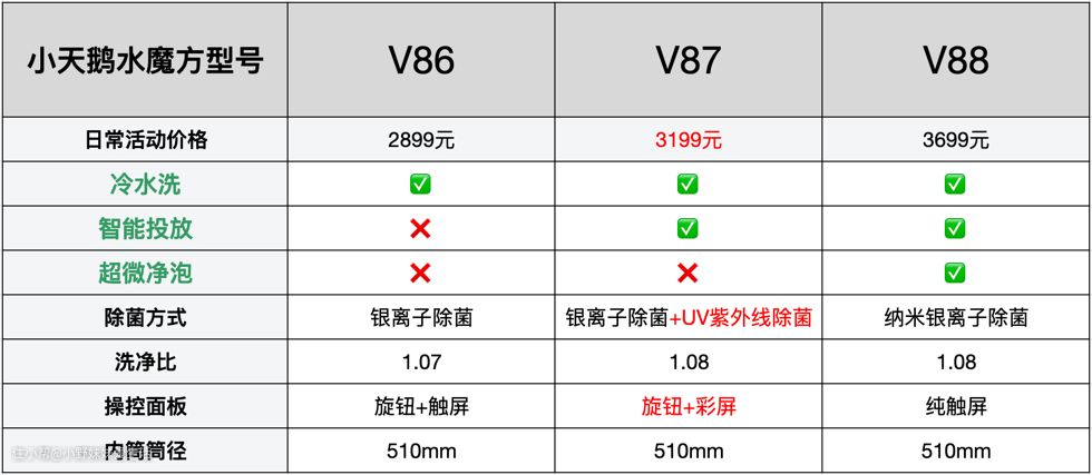 V86单洗的在上面我们已经说过了,属于网销爆款,也是小天鹅水魔方系列的入门级型号之一;