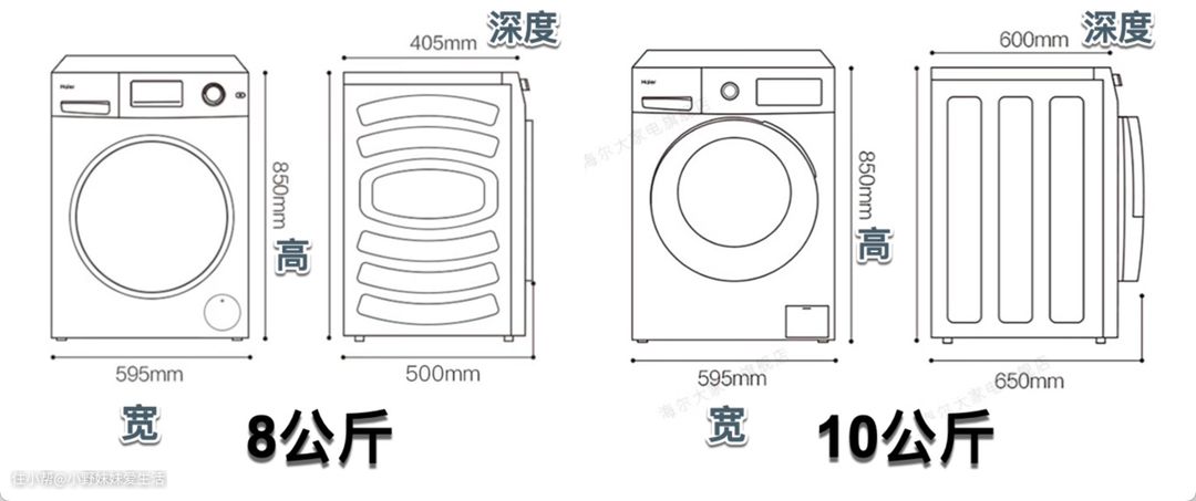 我们知道了容量选多大了,那么洗衣机的尺寸又是怎样的呢,毕竟我们是要放到我们预留好的位置上的,洗衣机大了、小了都不合适。