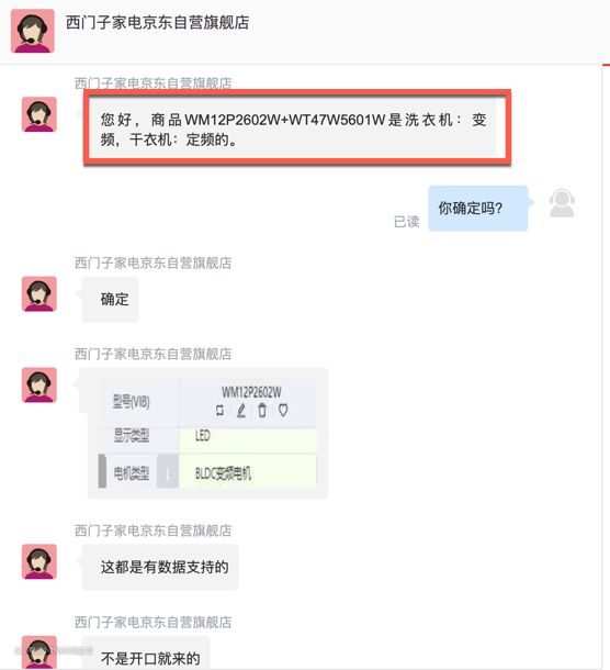 这款西门子洗烘套有很多朋友也都在问,到底洗衣机和烘干机是不是都是定频的,这里我也跟客服做了取证: