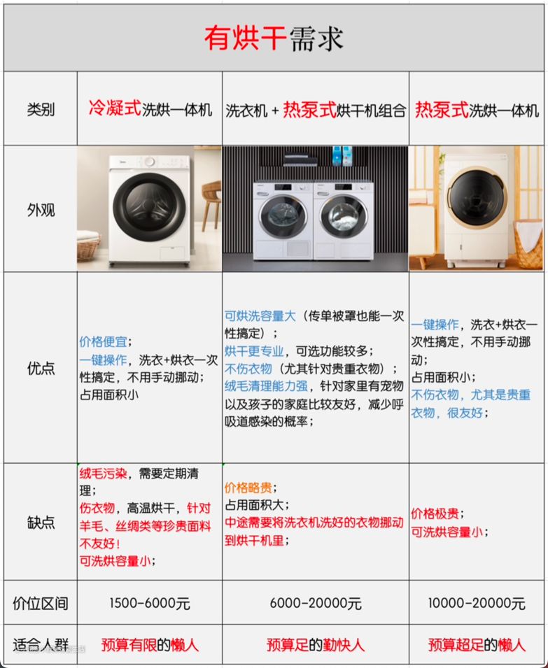 但是你如果预算充足的情况下,还是建议选择洗烘套装的,原因如下: