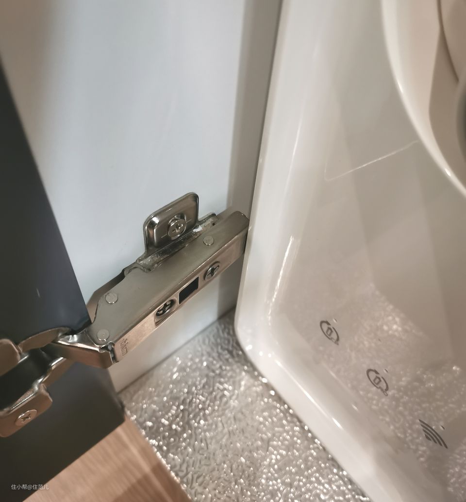 扫地机器人、小家电这种完全放进柜子里的,要考虑柜门上的五金,它的合页和阻尼都在柜子表面,会限制柜内空间,这个常常被忽略,导致家电放不进去。