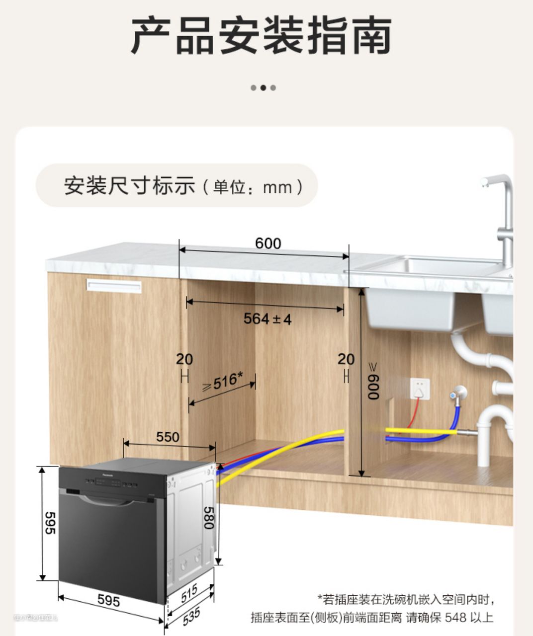 嵌入在橱柜里的家电,要注意橱柜的台面宽度和柜子宽度是两个尺寸。
