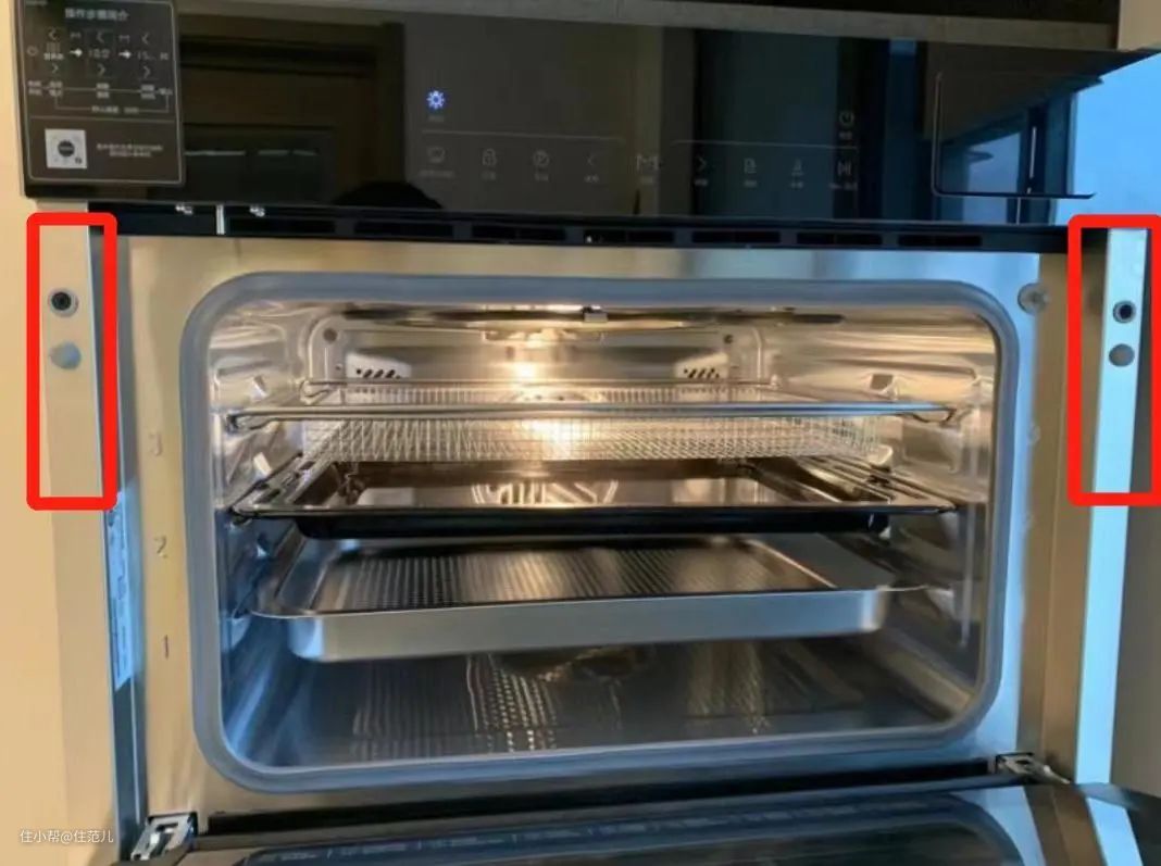 且嵌入式蒸烤箱是在两侧的柜板上加固的,所以对定制柜的开孔宽度有严格要求,太宽了固定不上。
