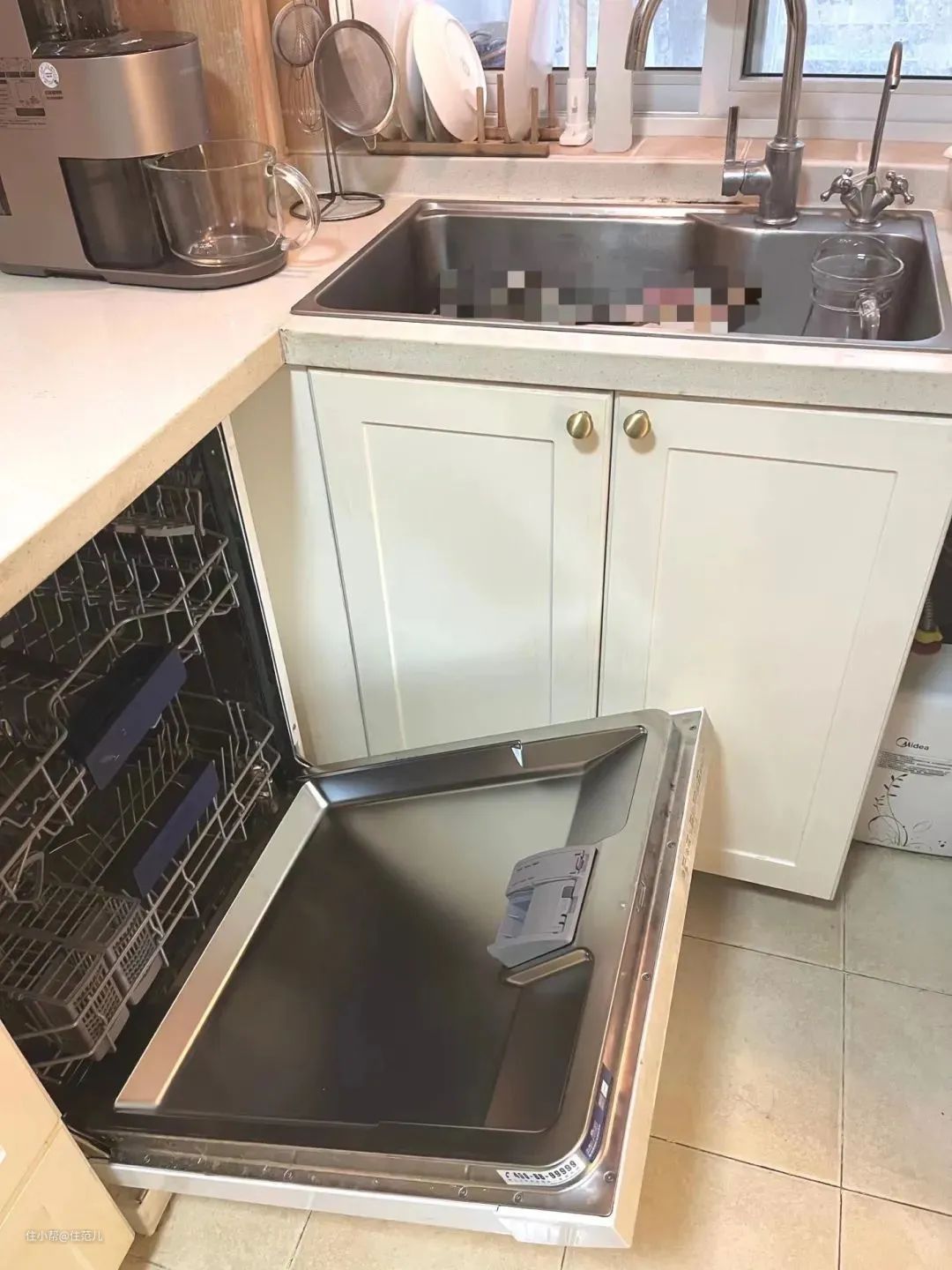 洗碗机要调整洗碗机底部踢脚线和柜子踢脚线的高度,否则很丑,安不上还可能要切割门板。