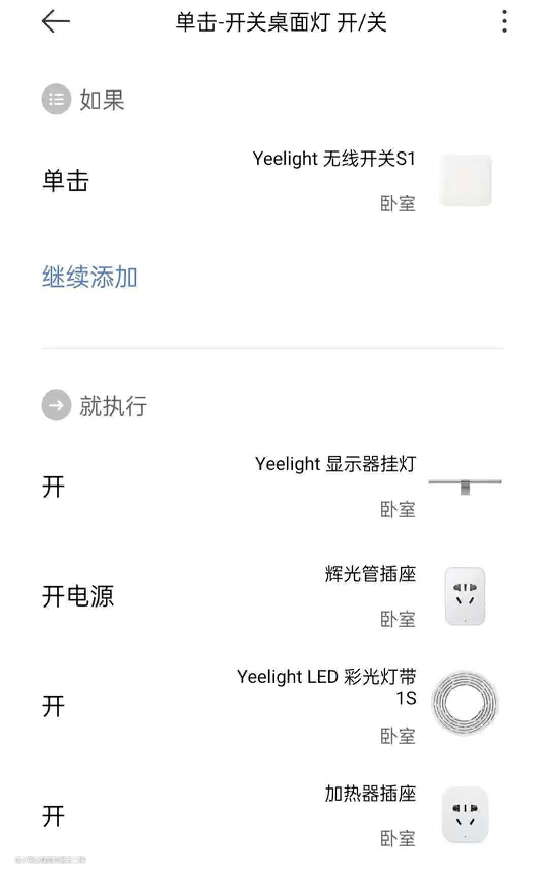 扩展与补充:这是一个可玩性很高的联动思路,智能门锁可以很方便的作为联动介质来触发其他家电进行工作。除了一些常见的智能家电外,甚至一些非智能家电,通过搭配使用智能插座也能轻松进行联动,比如电视、空调(需要专业的空调伴侣这类智能插座)等。另外如果为了更加精确的控制亮灯条件,可以通过设定亮灯工作时间,或者搭配光照传感器来实现更加精细的控制。